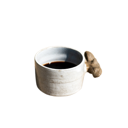 Handmaid coffe mug with a comfortable ”branch” handle.