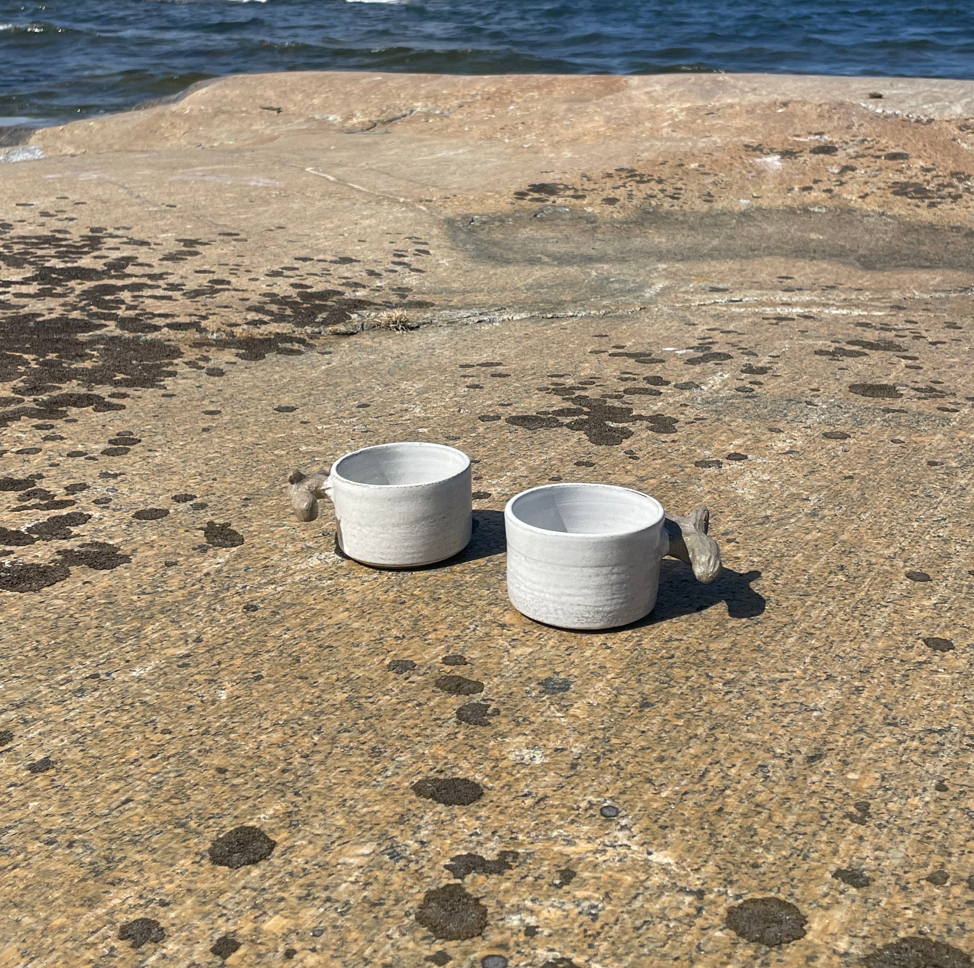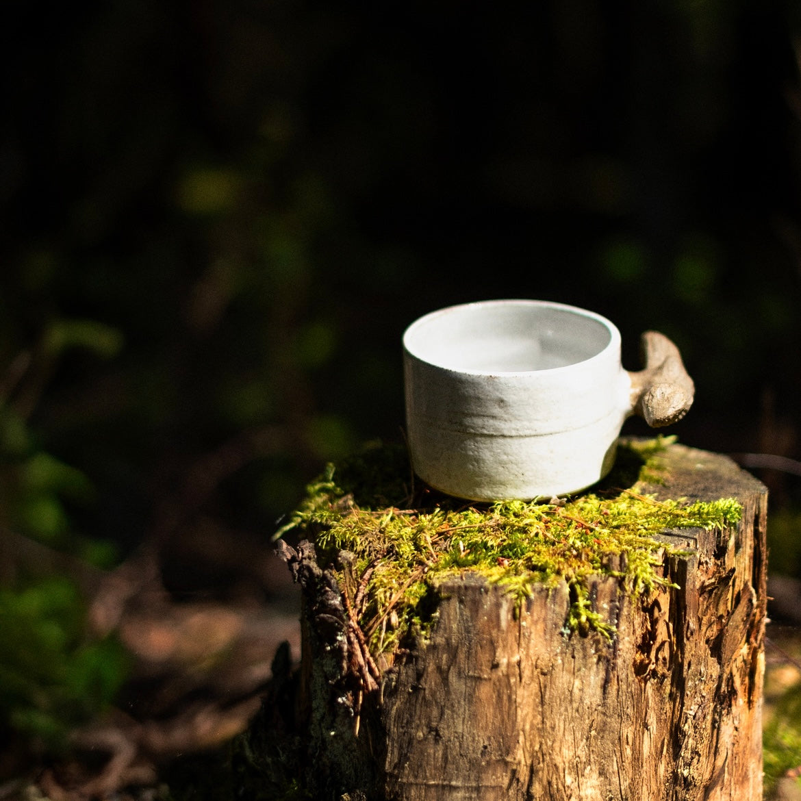 Handmaid coffe mug with a comfortable ”branch” handle.